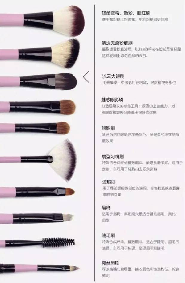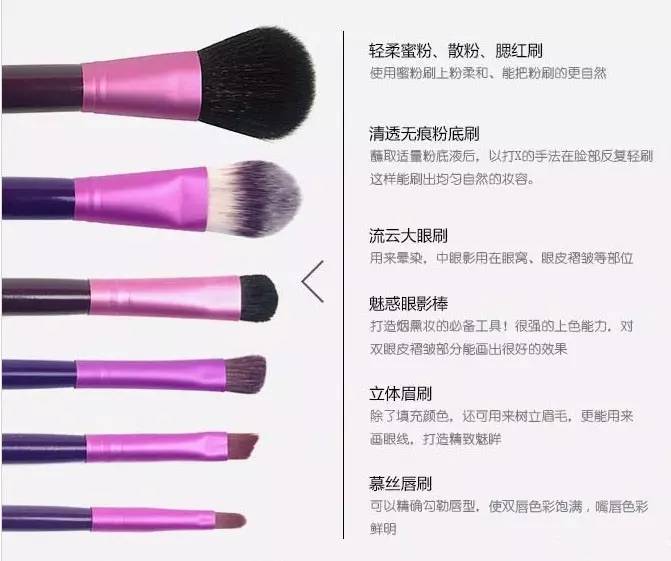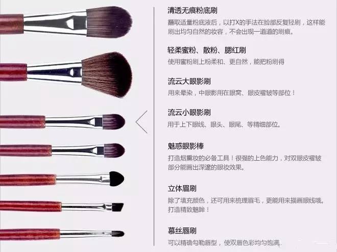 化妝刷是我們常用的化妝工具,尤其是彩妝使用化妝刷才能夠化出即快速又好看的妝,但是由于化妝刷套裝的模樣大同小異,只不過(guò)是形狀和大小有小小區(qū)別,對(duì)于新手來(lái)說(shuō)區(qū)分化妝的用途簡(jiǎn)直是噩夢(mèng)。那么怎樣才能記住化妝刷的用途呢,下面小編為大家詳細(xì)介紹一下。