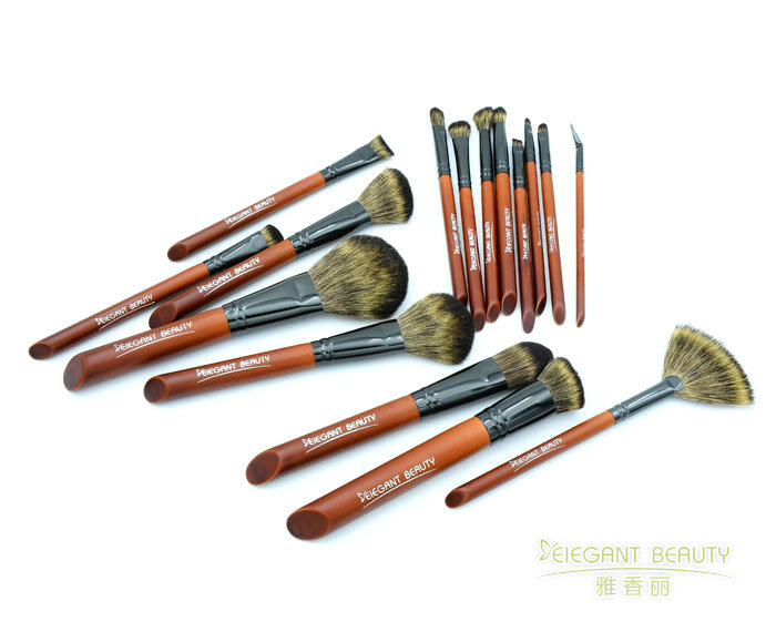 產(chǎn)品說明:仿紅木尖形木柄 超柔軟尼龍毛 16支專業(yè)化妝套刷,滿足所有精致妝容所需,打造精致迷人妝容